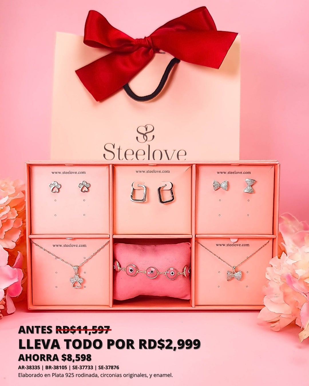 Plata 925 rodinada, circonias originales, y enamel.