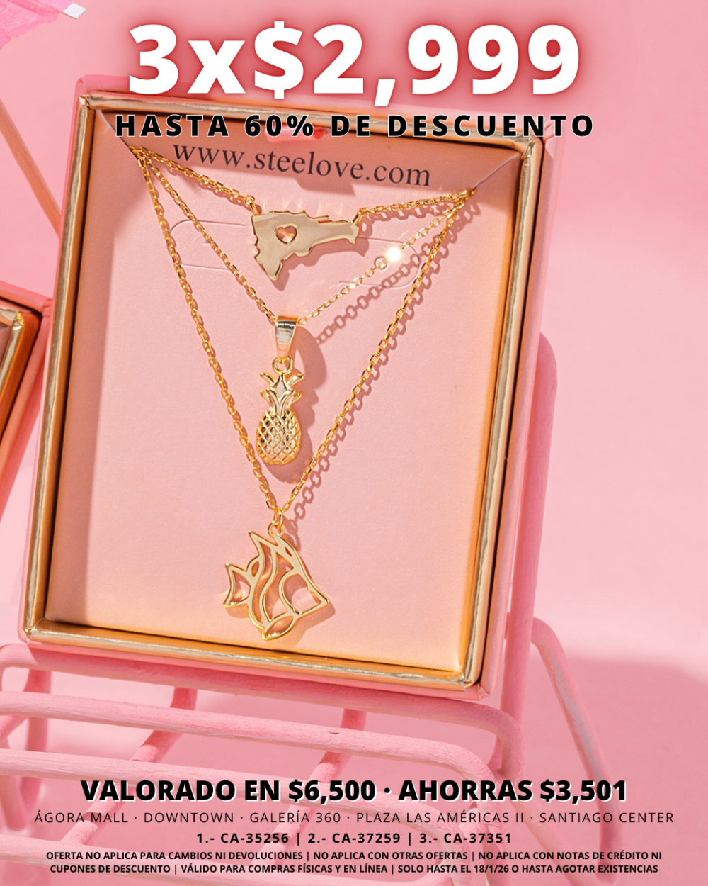 Nuestras joyas tienen garantía. Esta cubre dentro de los primeros 180 días o 6 meses a partir de la fecha de compra.